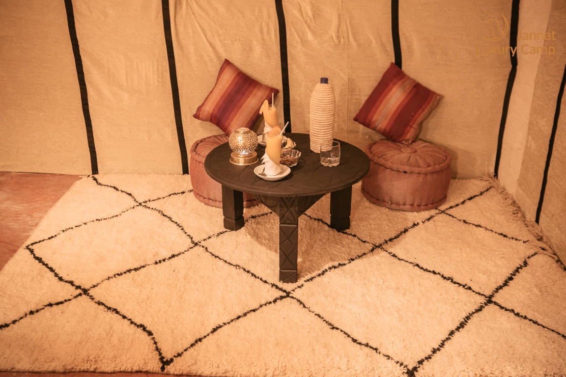 Jannat Luxury Camp offre un excellent service de haut rang dans les tentes de luxe; parmi ces tentes vous propose une tente Twin de 35m², où vous laisserez calme et confort. cette tente peut accueillir 2 clients.